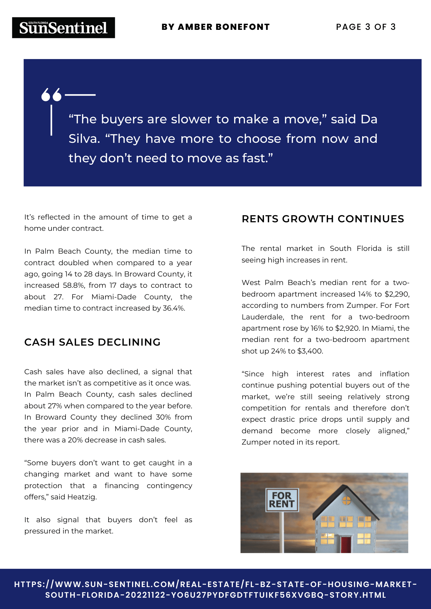 𝐒𝐭𝐚𝐭𝐞 𝐨𝐟 𝐭𝐡𝐞 𝐌𝐚𝐫𝐤𝐞𝐭 ~ While housing prices and cash sales continue to decline, the rental market continues to grow. This was the topic of conversation this week between 𝐁𝐫𝐨𝐤𝐞𝐫 𝐏𝐚𝐭𝐭𝐲 𝐃𝐚 𝐒𝐢𝐥𝐯𝐚 and the 𝐒𝐮𝐧 𝐒𝐞𝐧𝐭𝐢𝐧𝐞𝐥'𝐬 𝐀𝐦𝐛𝐞𝐫 𝐁𝐨𝐧𝐞𝐟𝐨𝐧𝐭. Read about the latest trends in the South Florida Real Estate market here.